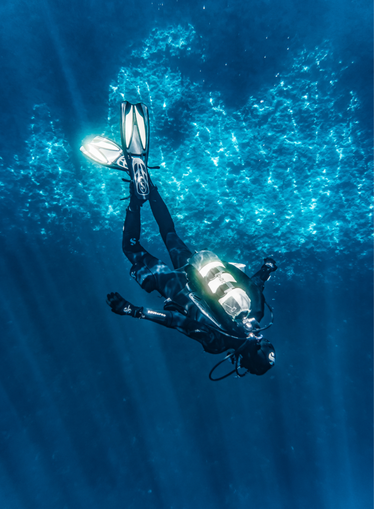 Siente la emoción de explorar cuevas submarinas, pecios y pendientes escarpadas.